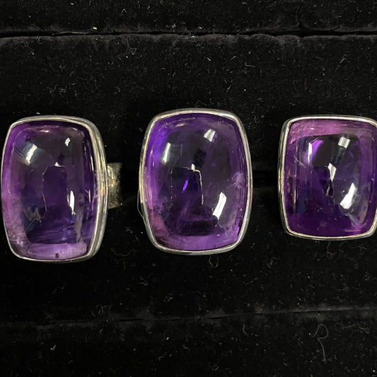 Amethyst Silver Spinner Ring with Double Band (Silver, Twisted Gold)