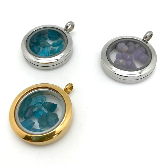 Raw Aquamarine Stone with Moonstone - Brass Top Pendant