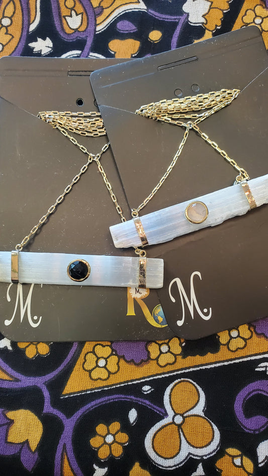 Selenite Stick with Gemstone Fashion Necklace - Michal and Company