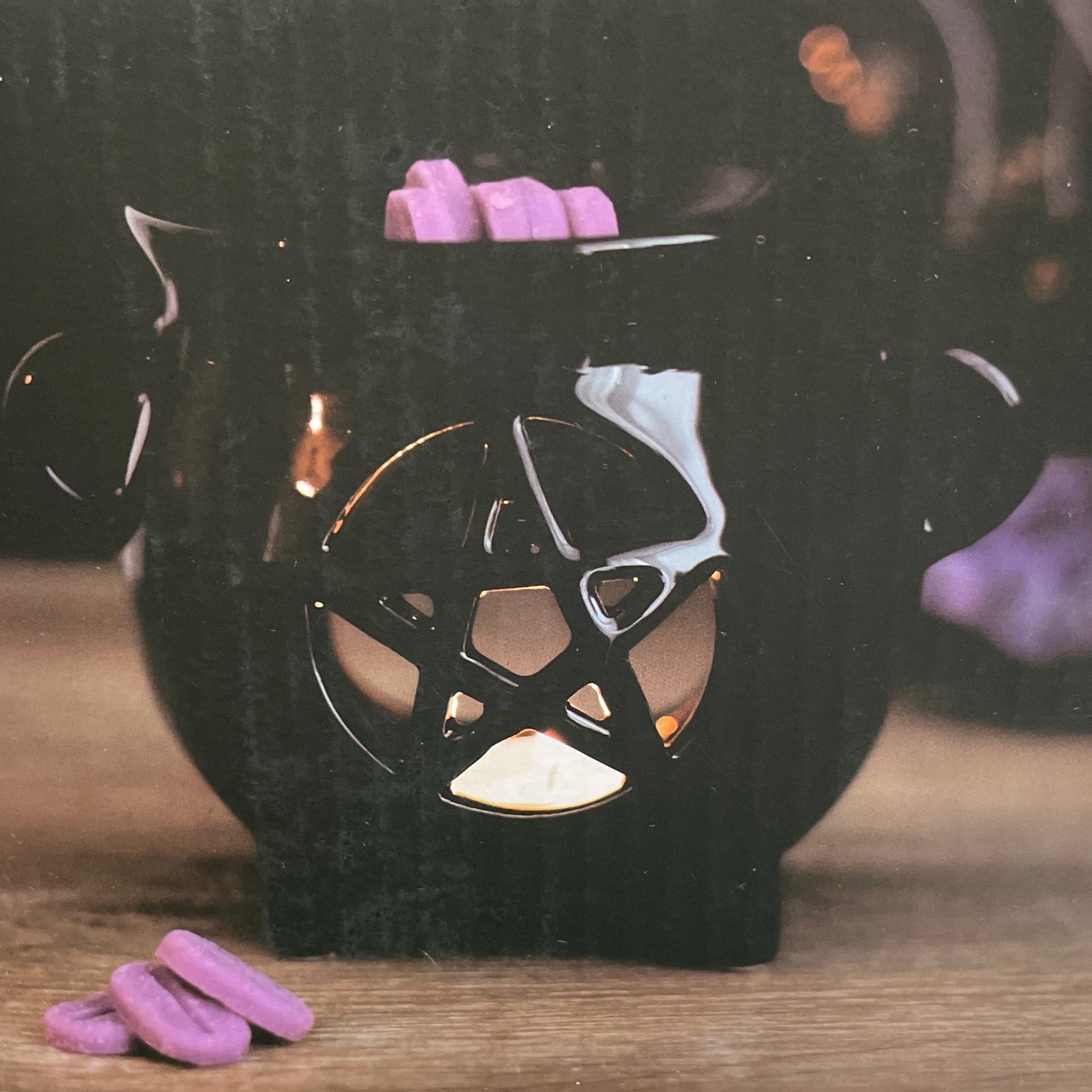 Ceramic Pentagram Cauldron Oil Burner / Wax Melter (Black)