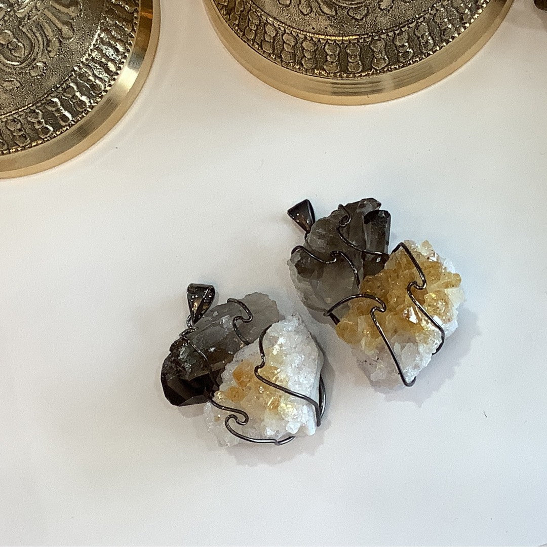Citrine and Smoky Quartz Stacked Wire Pendant