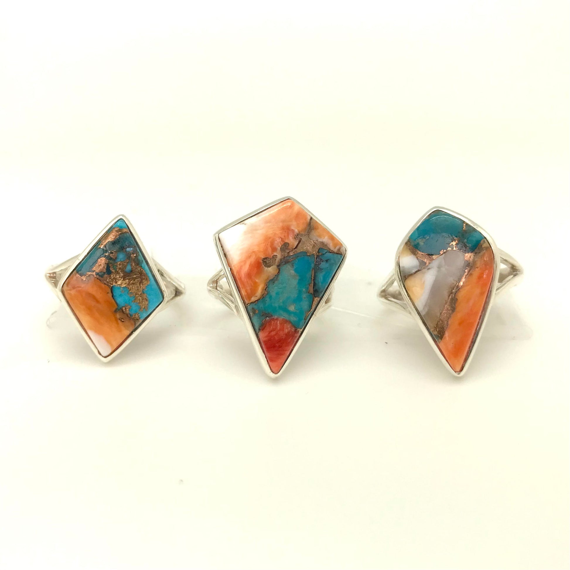 Spiny Oyster Turquoise Silver Ring (Kite / Diamond)